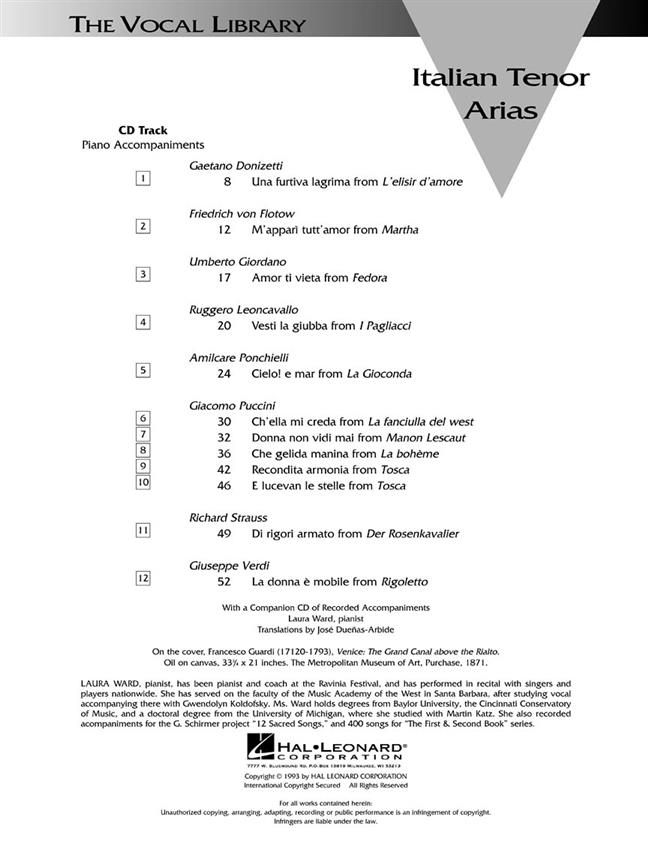 Comprend les notes de l'intrigue et la traduction pour chacun. Comprend également les CD compagnon d'accompagnements enregistrés, Laura Ward, pianiste.