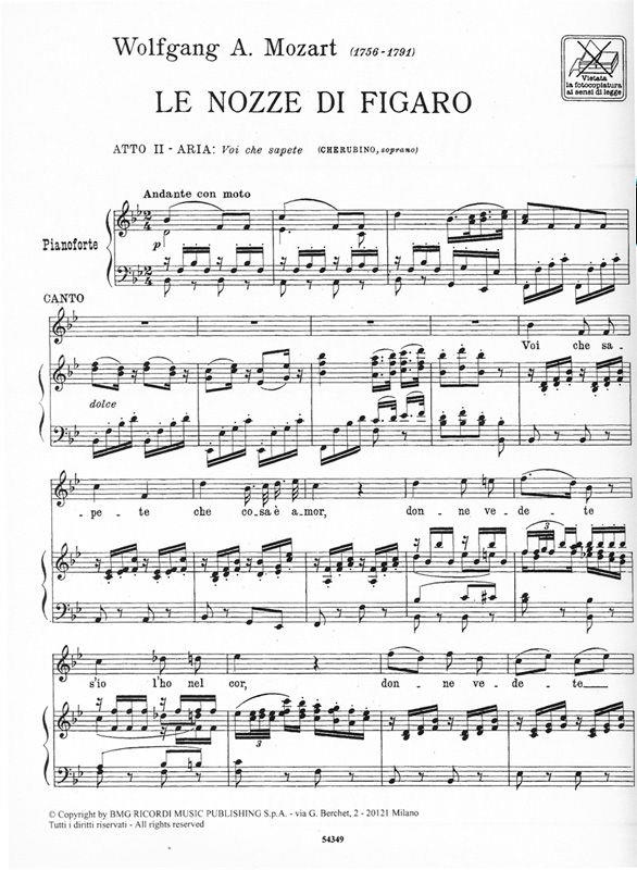 Voi Che Sapete Dall’Opera Le Nozze Di Figaro (Noces de Figaro) MOZART WOLFGANG AMADEUS