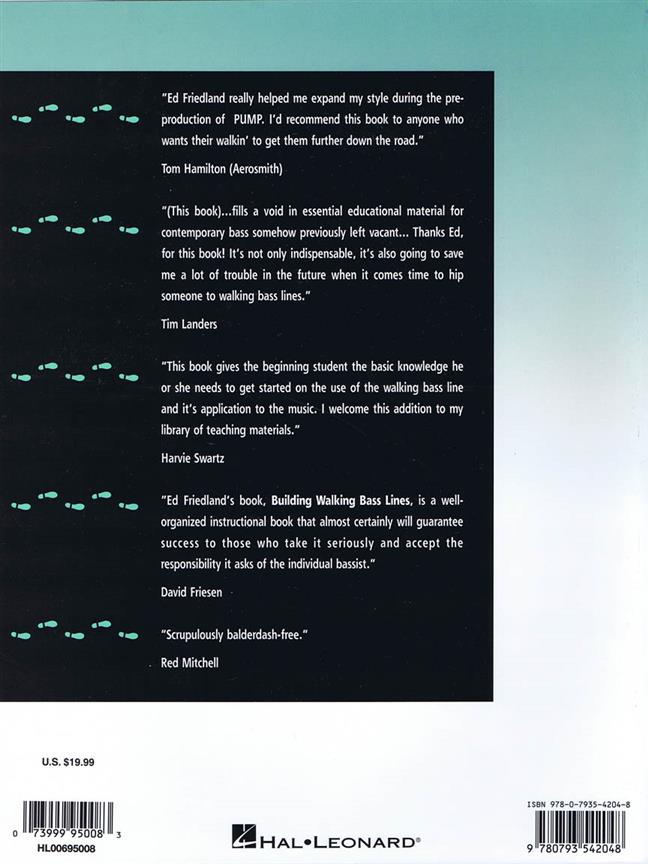 Une ligne de basse de la marche est l'approche la plus courante à jouer de la basse jazz, mais il est également utilisé dans la musique rock, blues, rockabilly, RandB, gospel, Latin, pays et beaucoup d'autres types de musique. Le terme " marche " est utilisée pour décrire le sentiment émouvant que créer des notes de quart dans la partie basse. L'objectif spécifique de cet ouvrage est de familiariser les joueurs avec les techniques utilisées pour construire des lignes de basse de la marche et à leur faire prendre conscience du fonctionnement du processus. Grâce à l'utilisation de valeur 90-minutes des pistes de rythme enregistré, les joueurs auront l'occasion de mettre l'apprentissage de nouvel directement dans l'action. Cet ouvrage donne littéralement bassistes les outils que dont ils ont besoin de construire leurs propres lignes de basse de la marche.