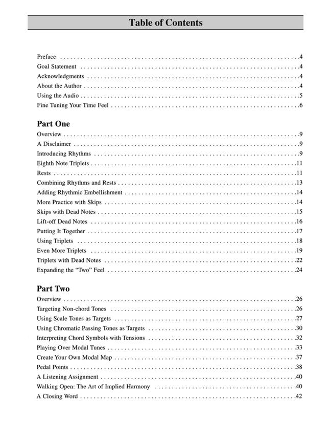 Suivi de lignes de basse marche de bâtiment, cet ouvrage s'approche plus avancée de concepts, y compris la cartographie du modèle, le deux-feel, plusieurs " doit connaître les changements, " la marche et autres importantes leçons bass jazz. CD comprend un trio de jazz pour pratiquer des airs standards.
