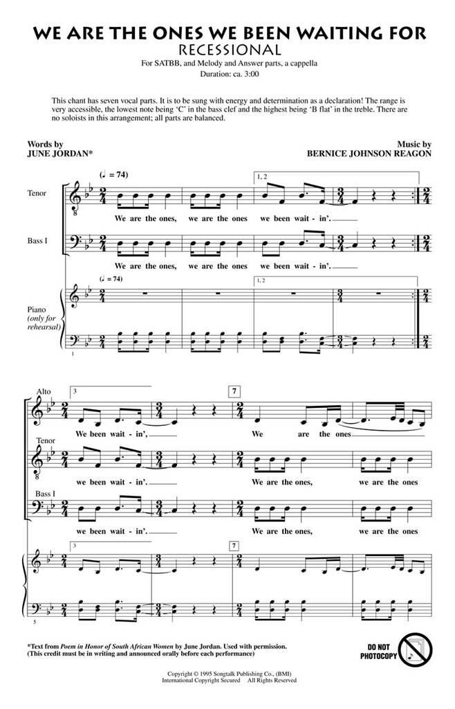 We Are the Ones We Been Waiting For REAGON BERNICE JOHNSON