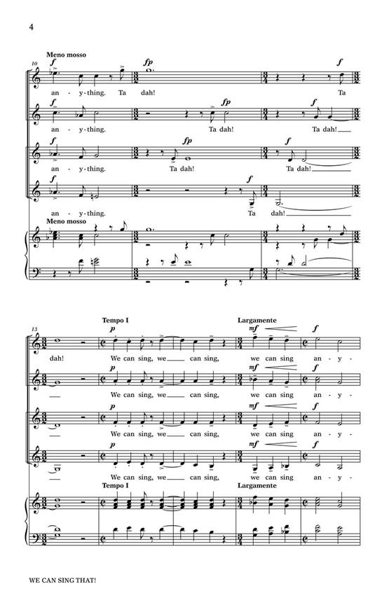 Avec un texte du compositeur, c’est un kaléidoscope délicieux de bouts musicaux qui mettent en valeur les joies du chant choral ! Mélodie, harmonie, contrepoint, on peut chanter N’IMPORTE QUOI ! Tada !