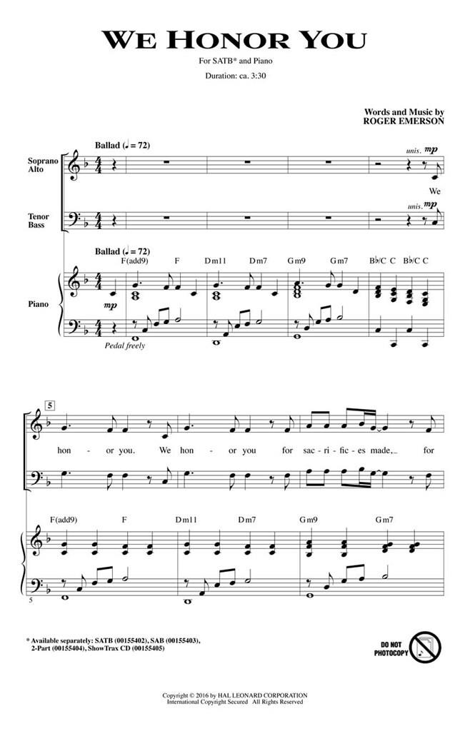 Pour le Jour des anciens combattants et d’autres occasions commémoratives honorant nos troupes, cet original puissant est un hommage parfait à ceux qui servent. Des parties vocales bien conçues garantissent le succès des chœurs jeunes et en développement, et elles conviennent parfaitement à des chorégraphies simples ou à des images visuelles.