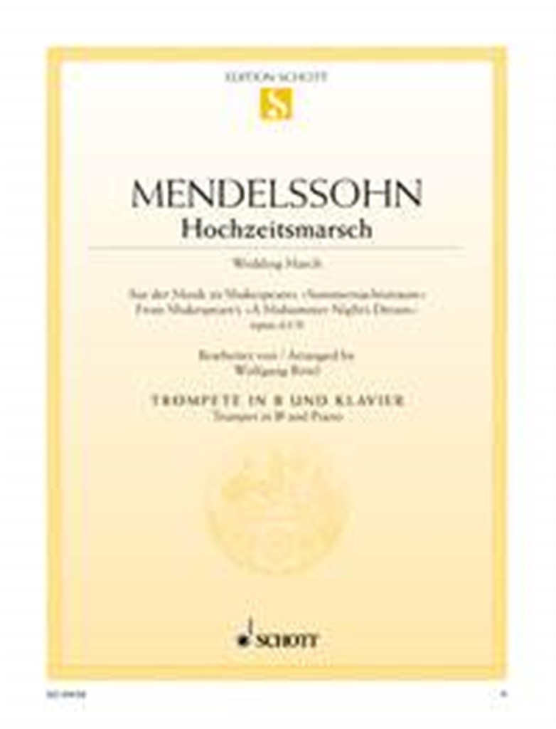 Un mariage sans célèbre marche nuptiale - inimaginable ! Le « Chœur nuptial » de Wagner tiré de « Lohengrin » et la « Marche nuptiale » de Mendelssohn sur la musique de « Songe d’une nuit d’été » rivalisent pour les couples nuptiaux et les cortèges nuptiaux. Si, en revanche, la musique doit être festive, la musique de fond de Mendelssohn pour la cérémonie de mariage reste le premier choix. Pour que la marche ne puisse pas être jouée uniquement à l’orgue mais aussi avec un instrument mélodique accompagné de piano (ou d’orgue), les présentes éditions proposent des arrangements faciles à jouer.