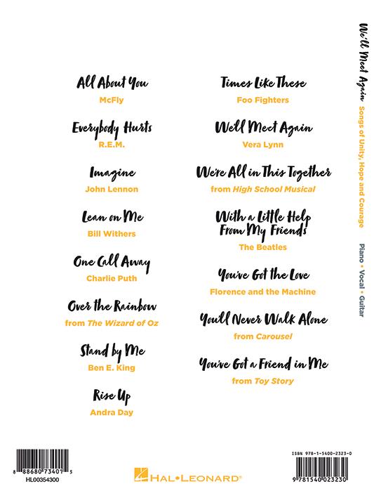 15 empowering songs, including: Imagine, Lean on Me, One Call Away, Over the Rainbow, Times Like These and more!