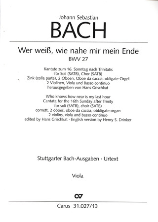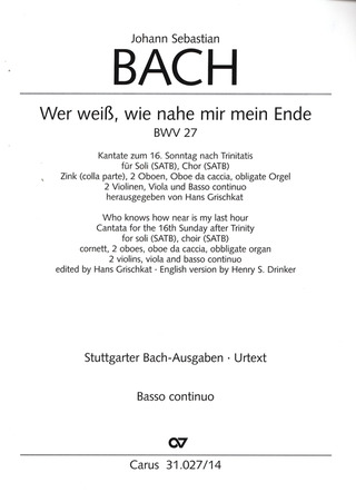 Wer Weiß, Wie Nahe Mir Mein Ende BACH JOHANN SEBASTIAN