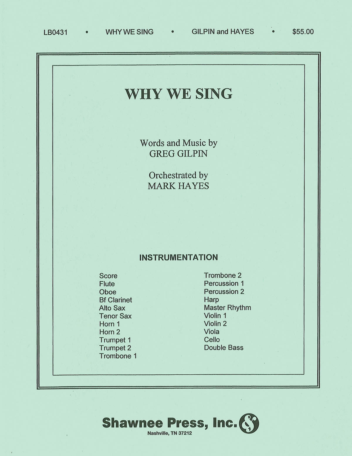 Cette ballade puissante et originale de Greg Gilpin est époustouflante tant par ses paroles que par sa chanson. Un simple début à l’unisson culmine avec une présence chorale complète et un descant émouvant. « Un son d’espoir, un son de paix, un son qui célèbre et dit ce que nous croyons ... C’est pour ça que nous chantons, que nous haussons notre voix. » Ce sera votre power ballade de l’année et avec l’orchestration complète disponible ou la piste d’accompagnement en CD, vos chanteurs et votre public seront littéralement émus aux larmes. Une œuvre chorale exceptionnelle ! Disponible séparément : SATB, SAB, TBB, SSAA, deux parties, orchestration, StudioTrax CD.