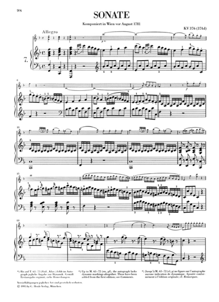 'Aurnhammer' Sonata F major op. II / K. 376 (374d)