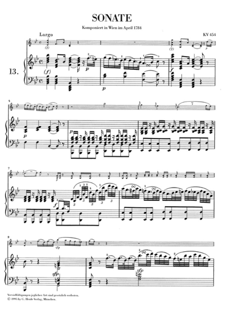Later Viennese Sonata B flat major K. 454