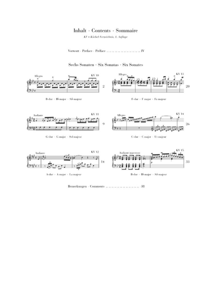 764 provenu à Londres six sonates K. 10-15 de huit ans de Mozart. Leopold Mozart pouvait comprendre la douance musical de son fils comme Dieu-donné miracle "que mon fils [...] tout dans ce son huitième Ans sait ce que vous attendez d'un homme de 40 ans Peut forderen ans. Avec bref: qui ne voit pas et entendre, ne peut pas le croire ". Vous pouvez jouer les six sonates en fonction de la page de titre comme un trio de piano, une sonate pour violon seul ou sur le piano. Après nous avons déjà présenté sous la forme de trio avec piano et Sonate pour violon (HN 1078), nous vous présentons le texte original de la version solo de piano.