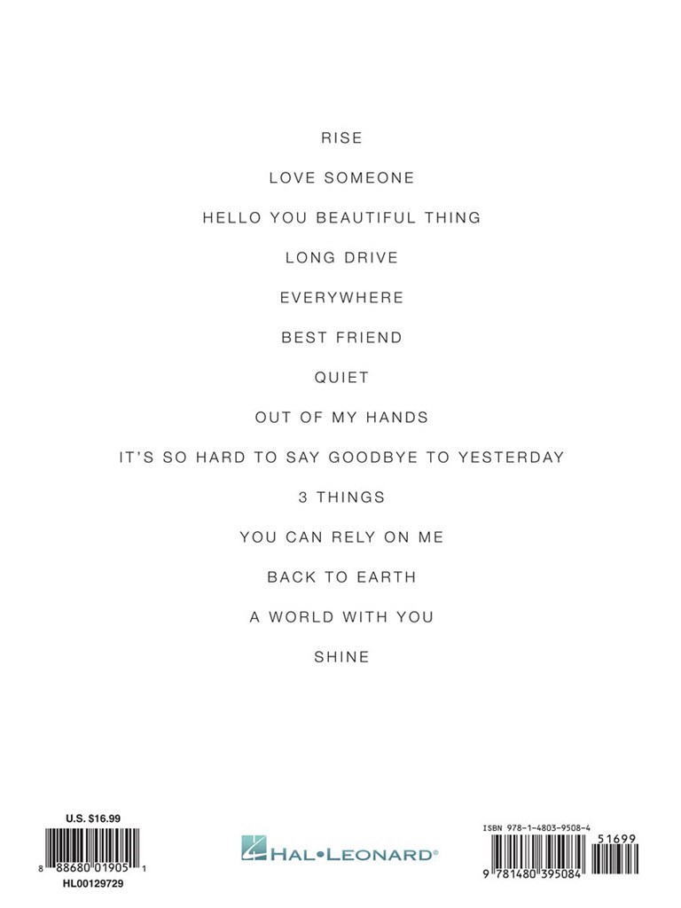 piano, voix et diagrammes d'accords guitare. Titres : Back To The Earth - Best Friend - Everywhere - Hello You Beautiful Thing - It's So Hard To Say Goodbye To Yesterday - Long Drive - Love Someone - Out Of My Hands - Quiet - Rise - Shine - 3 Things