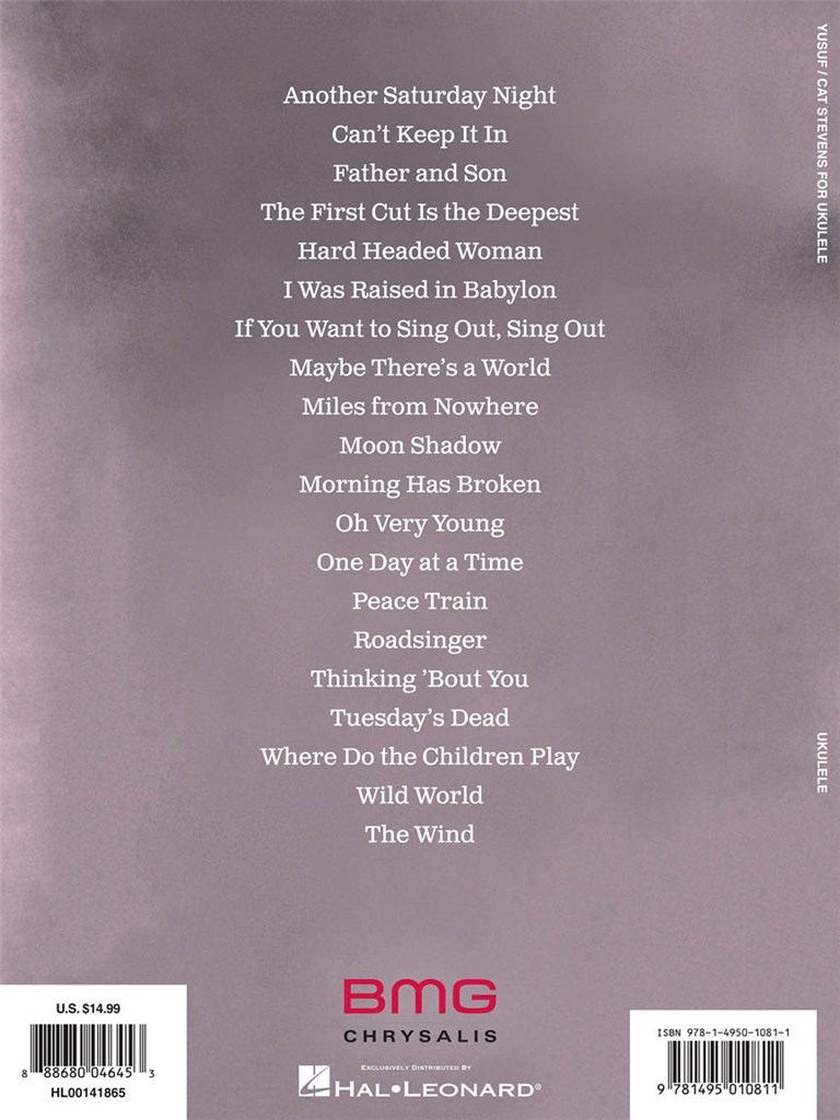 20 songs to strum and sing, including: Another Saturday Night - Can't Keep It In - Father and Son - The First Cut Is the Deepest - Hard Headed Woman - Moon Shadow - Morning Has Broken - Oh Very Young - Peace Train - Thinking 'Bout You - Where Do the Children Play - Wild World - and more.