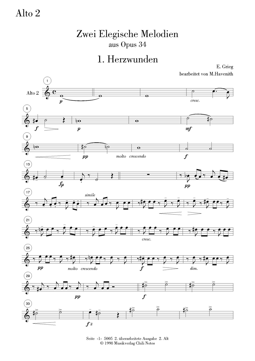 Zwei elegische Melodien op. 34 GRIEG EDVARD
